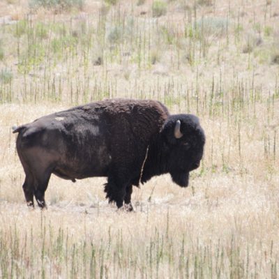 Na ostrově je taky pár kopců s vyhlídkou. Vyzkoušeli jsme jeden nejbližší, a pak si udělali kolečko kolem jiného kopce, a poprvé potkali bizona. Ten chrápal kousek od cesty a velkou radost z nás očividně neměl, radši jsme zvolili trasu bez něho :). Najednou bylo 19h a taky čas popojet do Blackfoot k našemu Couchsurferovi Peterovi. Přijeli jsme dost pozdě, ale i tak nás pohostil americkými hotdogy a doporučil nám místa, kam se podívat v Yellowstone. Pete nás ubytoval v zahradním domku pro hosty, za což mu děkujeme, bylo fajn se po tolika dnech cestování konečně natáhnout. Do Yellowstone nám zbývá asi 2h jízdy.